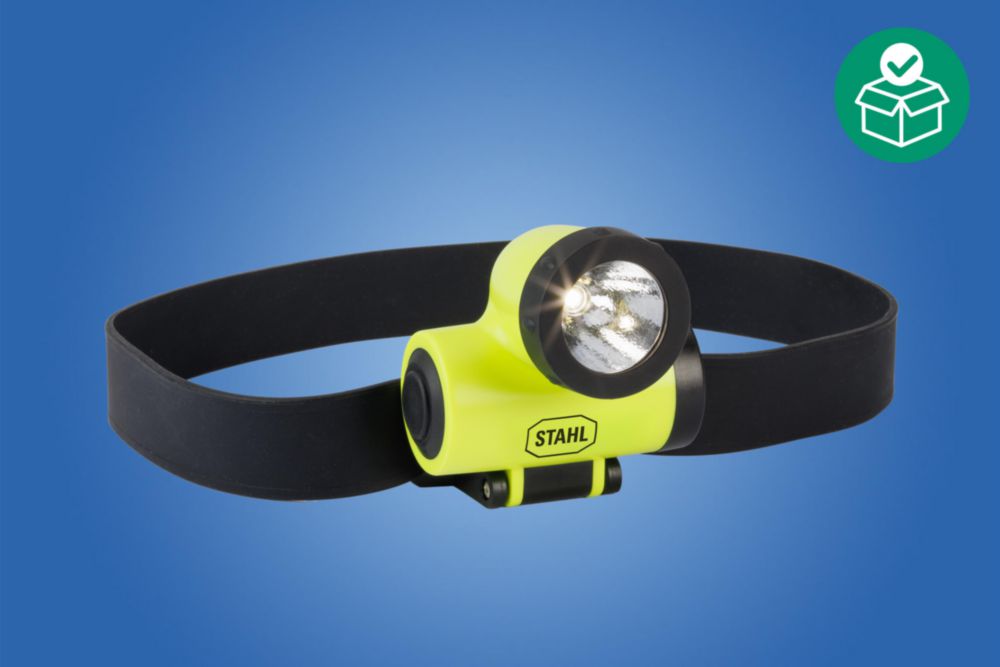 The 6141/64-1S head torch with ATEX and IECEx certification has been specifically designed for safe use in Zone 1, where it offers reliable performance when you need your hands free and full vision.With a luminous flux of approximately 120 lumens and a light range of up to 150 metres, it provides powerful illumination for maintenance, inspection or installation tasks – even in the most difficult conditions.The robust housing made from non-conductive plastic is 100% waterproof and boasts a rubber-coated lamp head with an individually adjustable radiation angle. A rubber-coated switch means that the head torch can be reliably operated with one hand, while the rubber and neoprene straps supplied ensure a secure, comfortable fit.
