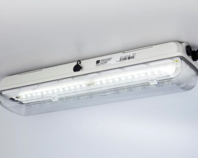 EXLUX Linear luminaire With LED GRP industrial design, 5000 K – neutral white, 2890lm; 18 W; 100 … 240 V, Drilled holes: 4 x M20, Size: 2