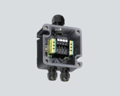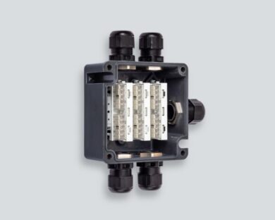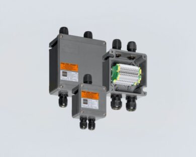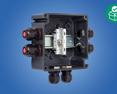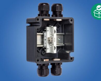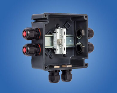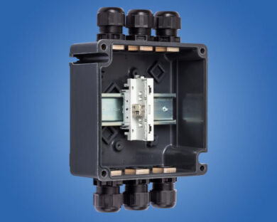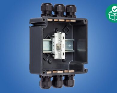 Ex e terminal box, 440 V, 1x WAGO 221-482, 4x M25 x 1.5 Polyamide cable gland, black, 1x Mounting rail 35 x 100 mm, Zone 1/2/21/22